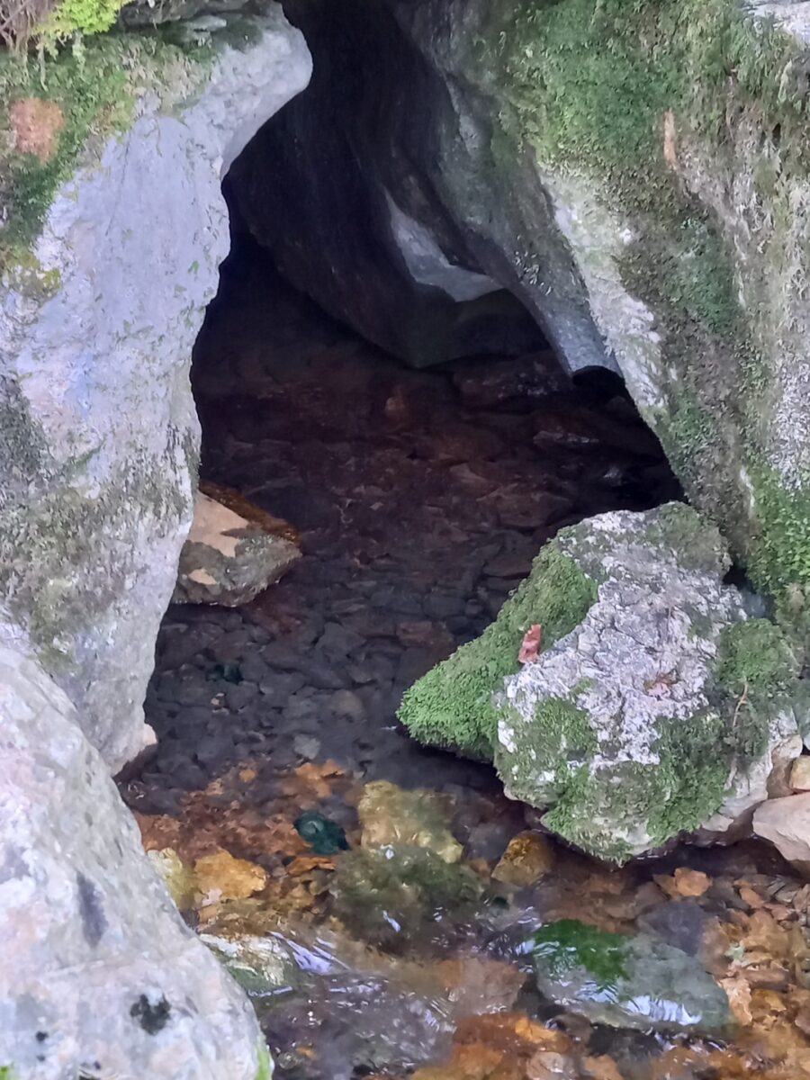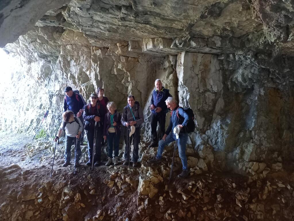 Nous commençons notre randonnée en longeant le petit ruisseau le Merlue (affluent de la Valouse) jusqu’à proximité du camping de la Faz. Un big problem !!! nous attend, en effet un arrêté préfectoral nous interdit de prendre le chemin prévu suite à divers éboulements de terrains.Après avoir regarder nos GPS avec Didier et Henri nous décidons de rejoindre Orgelet en suivant la route goudronnée, nous traversons le lotissement avant de rejoindre le chemin le long de la Valouse appelé aussi route des moulins mais cette fois de l’autre coté par rapport au chemin initial. Nous passons devant les 4 moulins (moulin de la ville, moulin neuf, moulin de la foule,et pour finir le moulin de la Meuge) c’est là que nous traversons le pont pour rejoindre Montjouvent lieu de notre pic nique. Après avoir bien profité de notre pause déjeuner assis sur une murette face au soleil nous reprenons notre chemin en direction de Marangea, Après avoir traversé le petit hameau on se retrouve vite à la Tufière sur notre gauche et la cascade sur notre droite (pour info le tuf est une pierre poreuse,friable qui se forme par concrétion du calcaire). Après avoir pris quelques photos de la cascade sur notre droite nous faisons ensuite un aller retour à la grotte de la Baume de Marangea d’où surgit le cours d’eau le Bief de la Tufière au dessus de la cascade, très jolie grotte. Nous longeons ensuite le Bief d’Enfer avant d’arriver au marais du Merlue et enfin de retrouver nos voitures à Ecrille.
