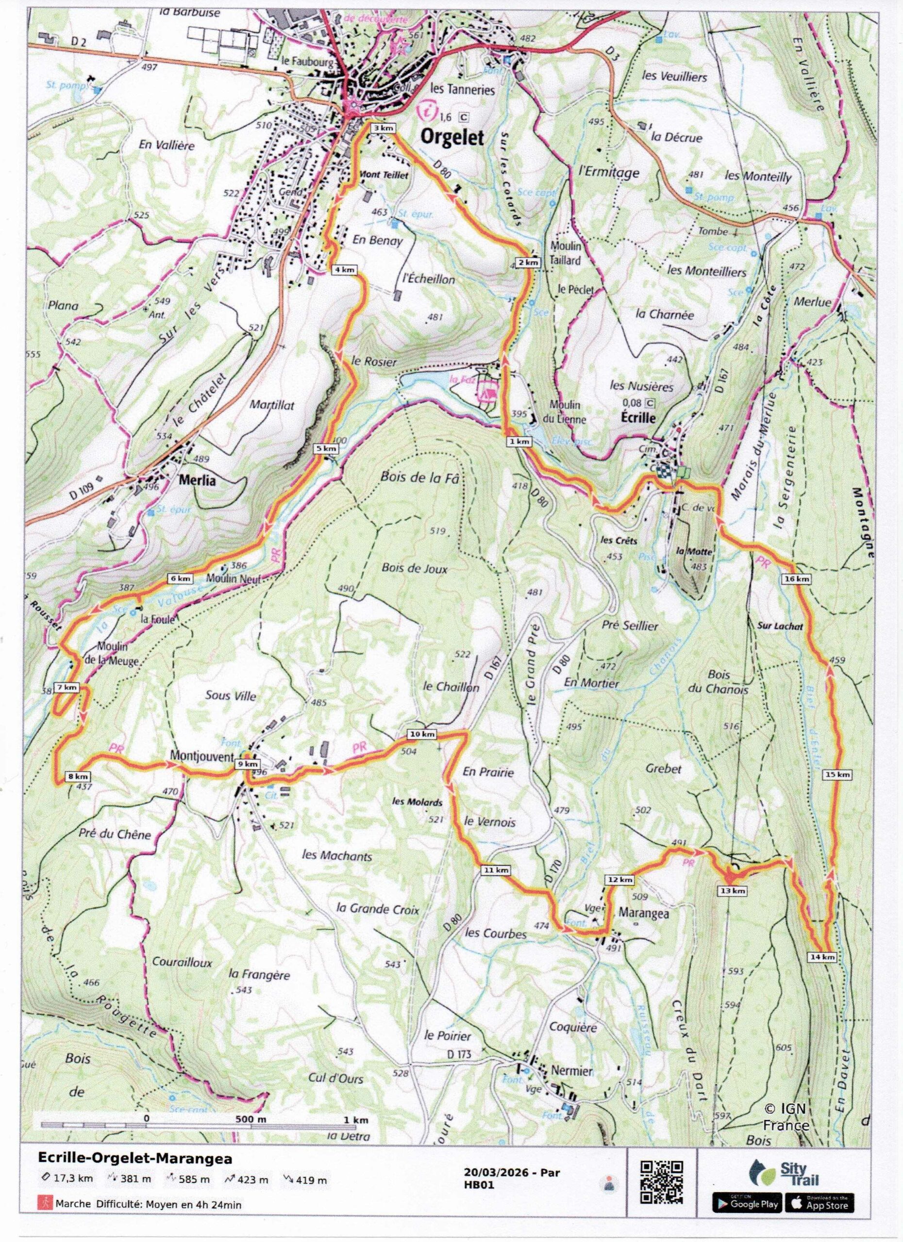 Randonnée de 16 km environ et 320 m de dénivelé positif.