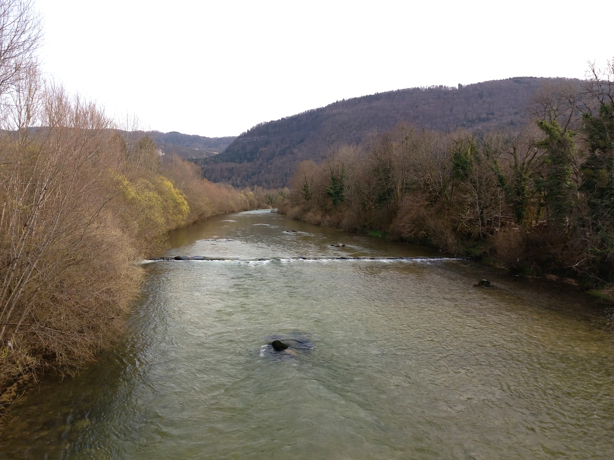 Comme la rando 1, nous sommes partis de Jeurre et nous sommes passés à la grotte de Nerbier. Et comme la R1, nous avons emprunté la rive droite de la Bienne à contre-courant. Nos circuits se sont séparés à hauteur du pont de Vaux les Saint Claude, mais nous ne sommes pas partis à la même heure.