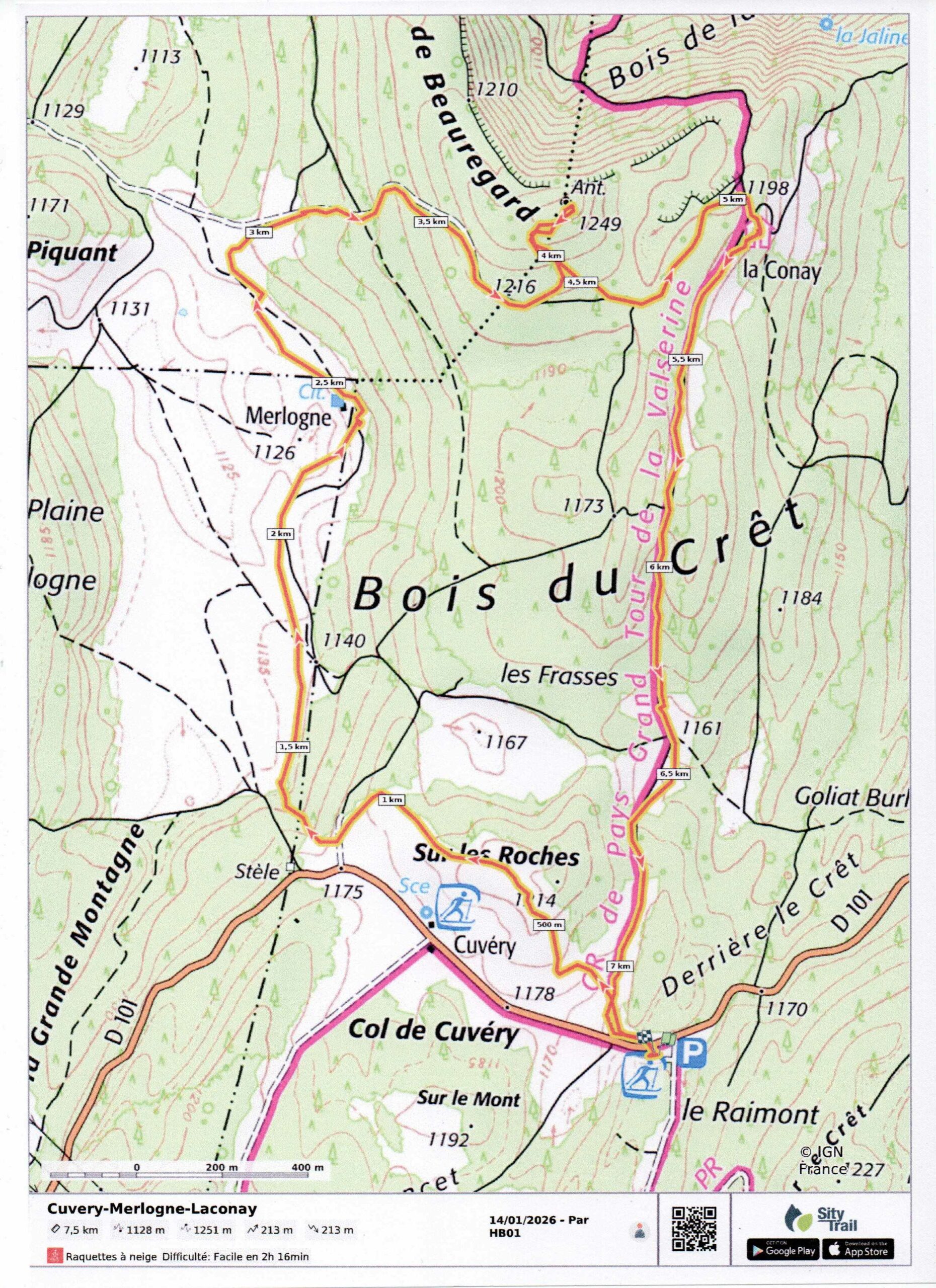 C.R. sortie raquette du mardi 13/01/2026 « Cuvéry – Merlogne – La Conay »