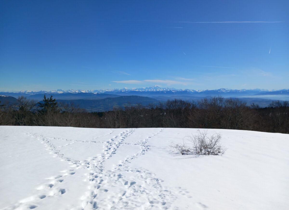 Ensuite nous prenons la direction de la ferme de Retord et pour ceux qui veulent voir le Mont Blanc,il faut monter à la croix de Montlery (la pente est sévère…), mais une fois en haut, le point de vue sur la chaîne des Alpes est exceptionnel à 360 degrés.