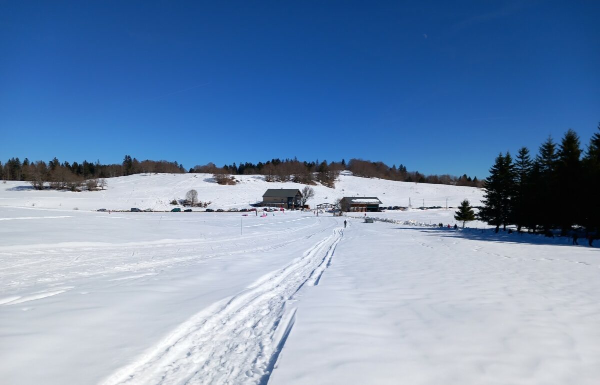Après être redescendus dans la poudreuse, nous récupérons la piste de raquettes où il est impératif de faire un arrêt « vin chaud », et terminer notre » balade » jusqu’à l’Auberge de Cuvery pour y retrouver 5 membres de la RSB qui nous on rejoints, pour le repas prévu à 12H30.
