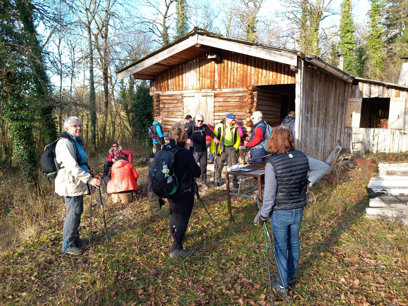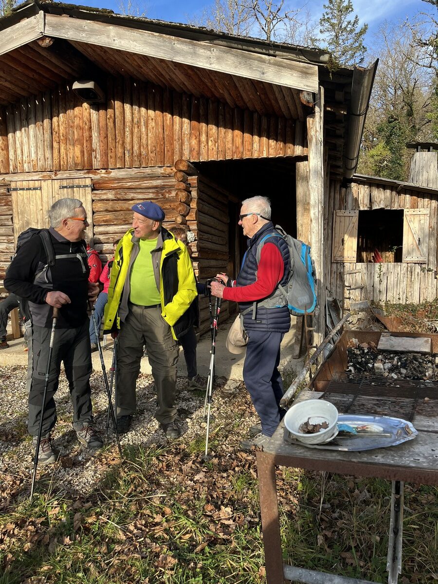 Pour la der de l’année nous avons randonné local, des quatre ponts (Ijean) par le sentier en sous-bois tortueux nous grimpons aux mollard aux Biches, un crochet par la pierre buveuse puis passage devant les ruines des fermes de Chanrion où l’on isolait jadis les lépreux, le col de sous Quatre Buis nous permet de descendre sur les combes de Cessiat pour la pose papillotes sur le parvis du chalet des chasseurs.