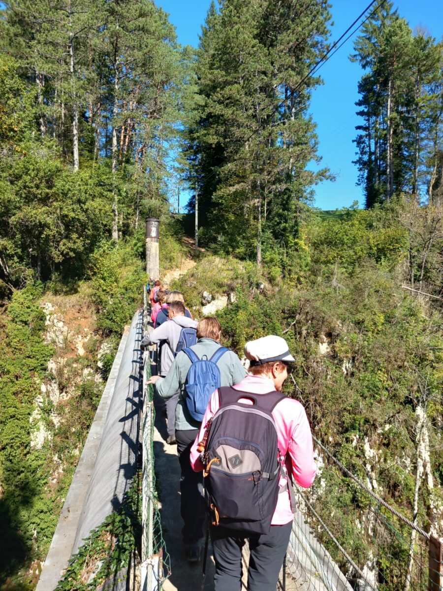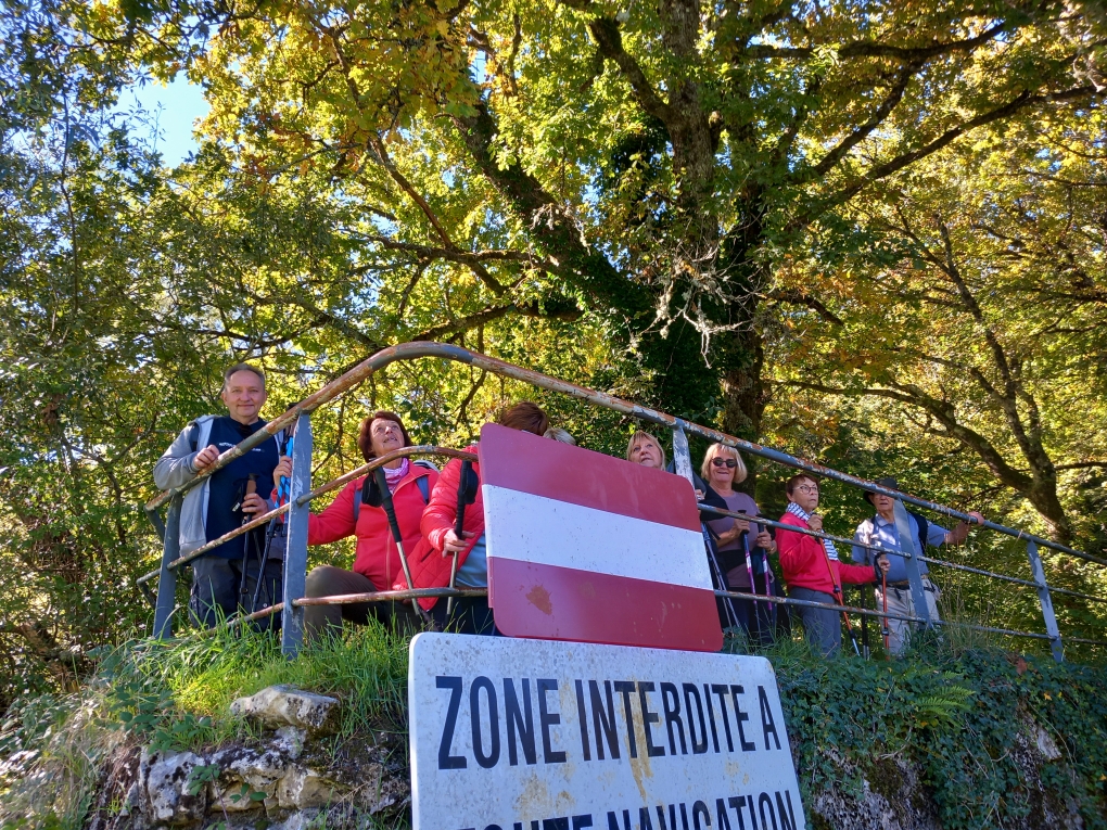 Le temps sec a favorisé la randonnée des Trablettes par 20 marcheurs. Quand ce n’est pas le cas elle est reportée. Nous avons eu dans le passé des parties du sentier dans l’eau sur la rive gauche de l’Oignin. Au « barrage des Russes » cette photo nous apprend les signaux de navigation. Quoi qu’il en soit, la pomme a été mangée à Liliat. Et le retour s’est parfaitement déroulé.