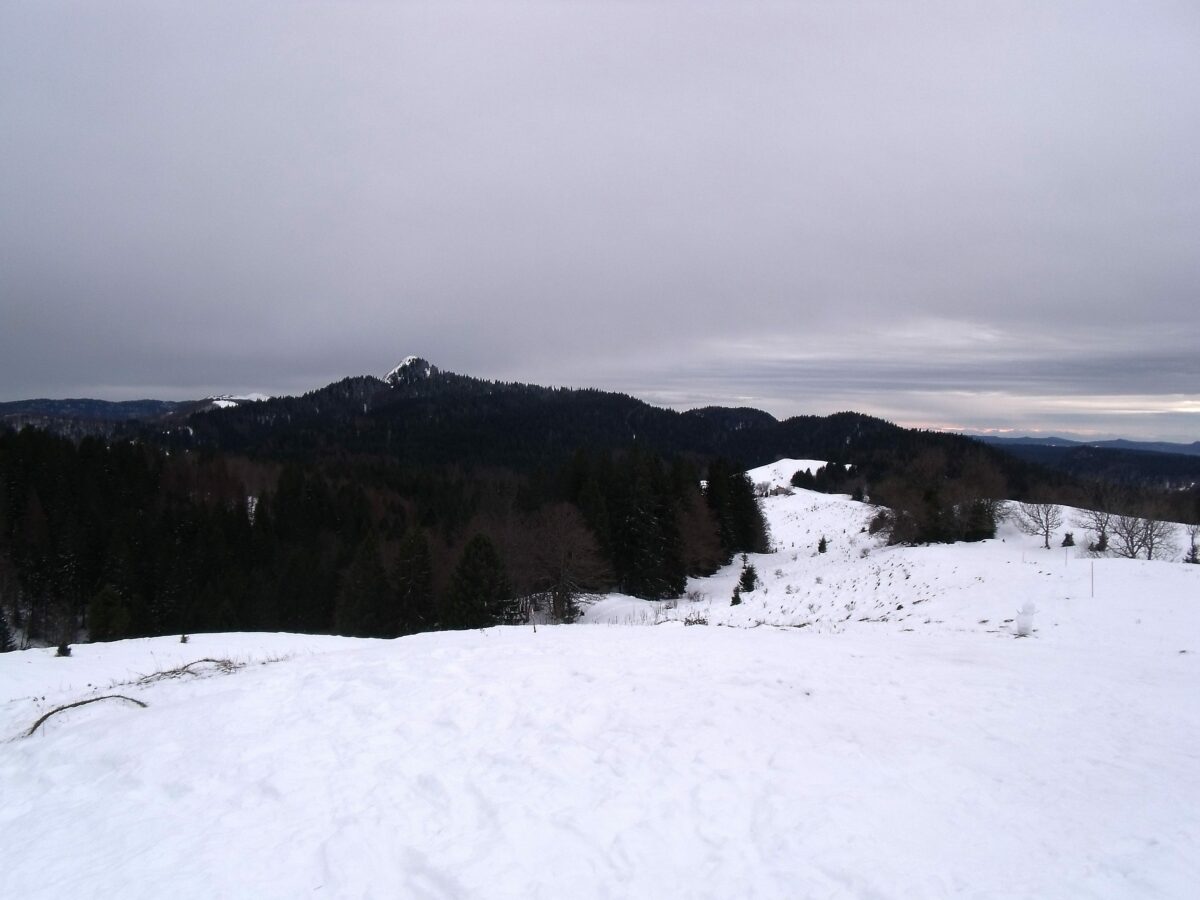 Je décide de nous replier sur le secteur de la Pesse, nous partons de L’Embossieux, franchissons la combe aux bisons pour arriver au lieu dit le Reposoir, traversons la combe de L’Enquerne, la montée est raide pour franchir le Cernois Brachon puis les crêtes du Nerbier où un fort vent glacial nous attend,, descente et retour par la combe Froide.