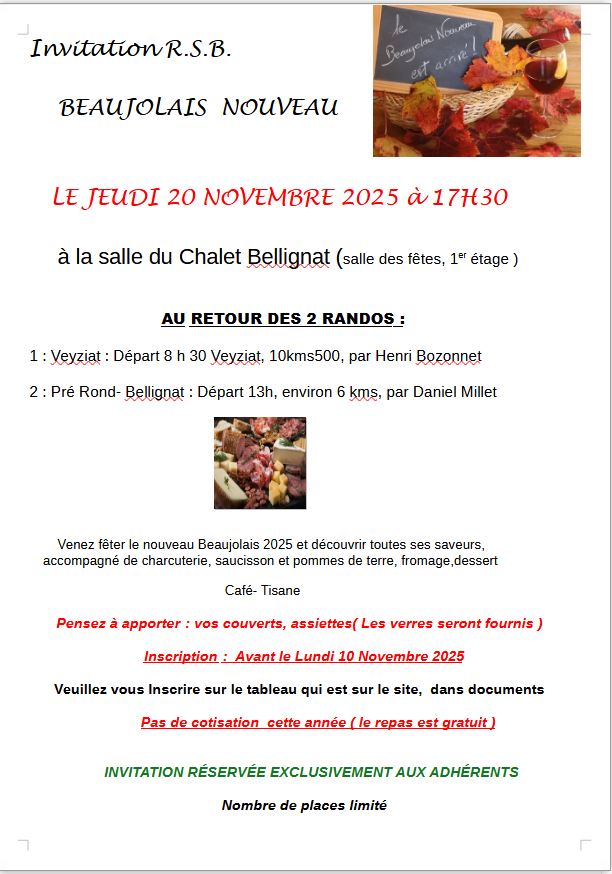 Invitation Beaujolais Nouveau 2025 et Le Thé Dansant du Club de l’Amitié