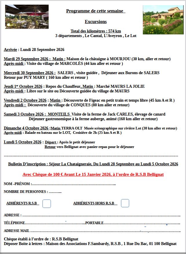 Nous vous envoyons la Proposition du Séjour R.S.B 2026