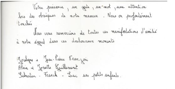lors du décès de sa maman Madame Jeanne Guillemenet