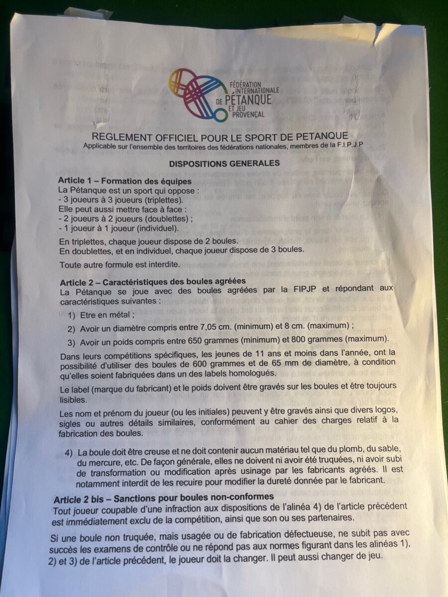 15 membres de la RSB pour participer à la pétanque du 7 avril et constater que notre Président Michel a le sens de l’humour.Nous avons trouvé les 17 pages du règlement officiel de pétanque accrochées au grillage à lire avant de jouer.Les membres présents se sont volontiers prêtés à cette demande avant un contrôle des connaissances.Comme d’habitude trois parties bien organisées par Gabriel avec une nouveauté pour 2026 un soleil et une chaleur estivale.